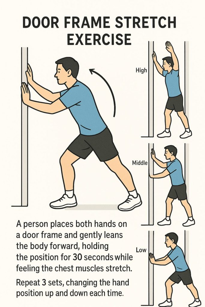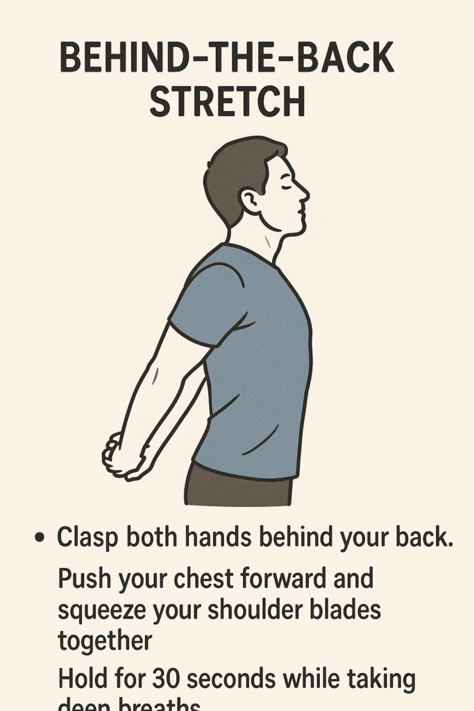 - 胸の筋肉が伸びるのを感じながら30秒キープ