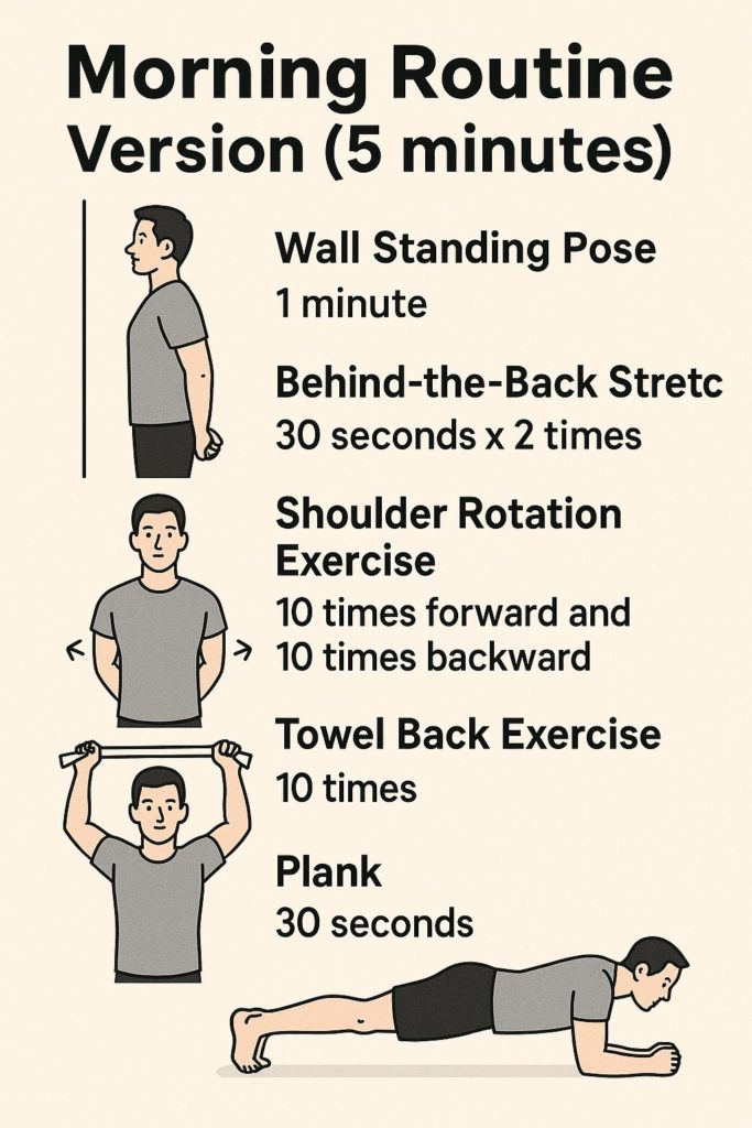 これを朝晩1回ずつ行うだけで、正しい姿勢の感覚が身につきます。